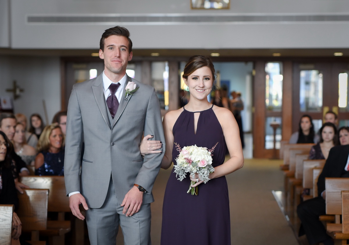We can’t get over how pretty all the getting ready photos are in Jaclyn and TJ’s gorgeous new home and how fabulous Jaclyn looked in her gown from From Clair’s Fashions. Doesn’t everyone in this wedding party just look like perfection in their beautiful purple dresses and those flowers by Belak Flowers are the prettiest! The photography was done by an associate photographer.